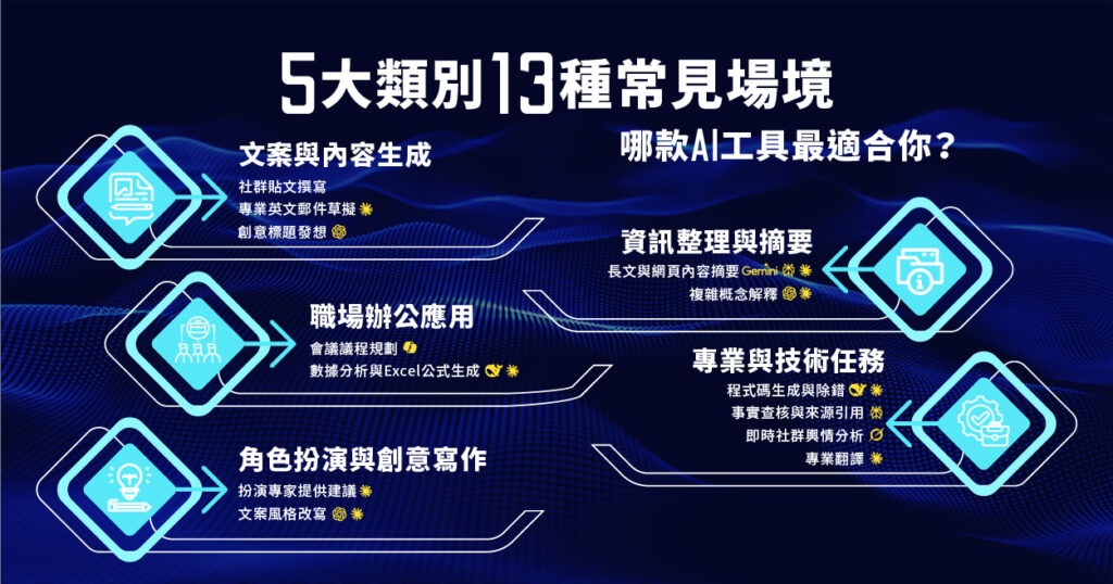 了解各種生成式 AI 工具 5 大類別 的 13 種適用場境