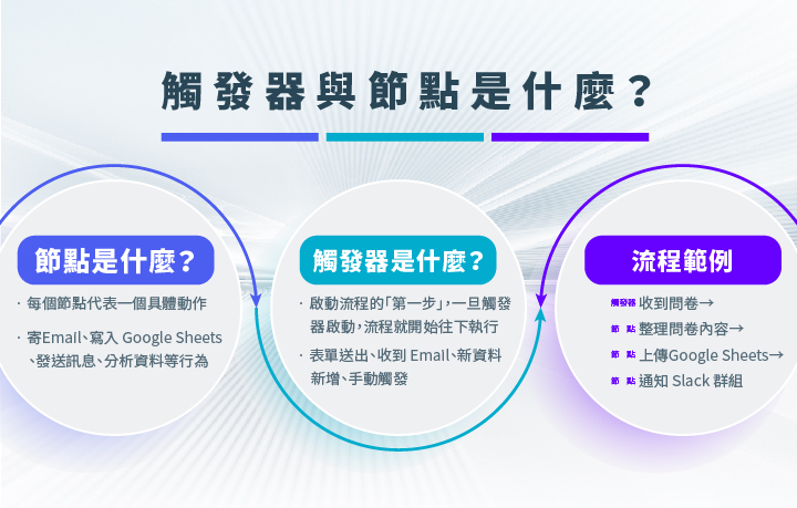 一旦觸發器啟動,後續節點就會依序執行。